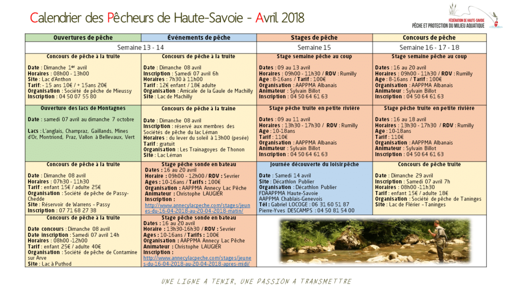 Quelles sont les dates et les lieux des prochains concours de pêche à la mouche en Haute-Savoie ?